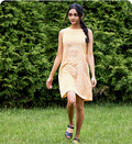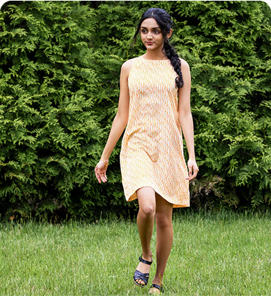 '-Block printed orange vine print -Comfortable fit -Shift style Fabric composition Cotton Silk